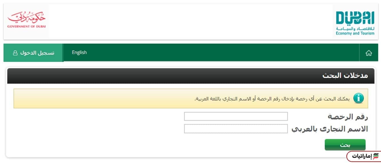 - اذهب إلى خدمة الاستعلام عن الرخص التجارية – دبي للاقتصاد والسياحة.