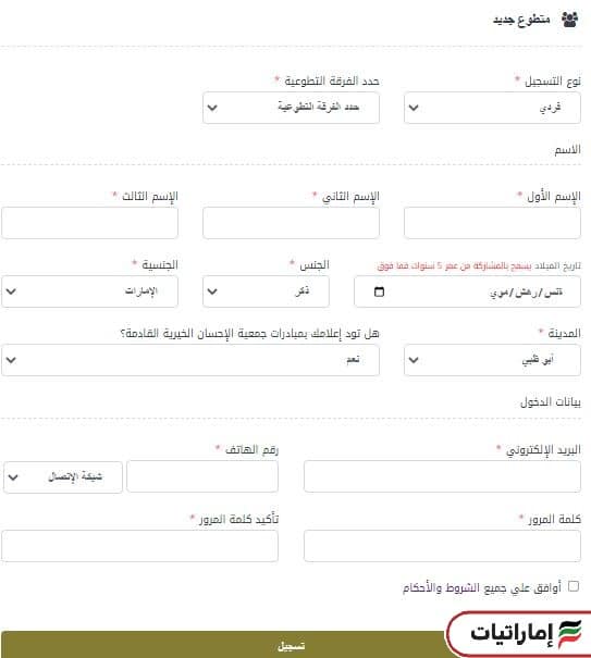 - حدد الفرقة التطوعية المناسبة (البسمة التطوعي، جمعية سفراء الامارات، شكرًا لعطائك التطوعي ….).